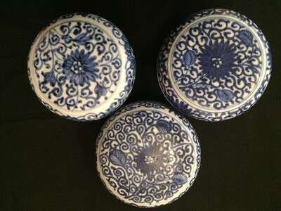 Three Chinese blue and white porcelain boxes and covers kangxi period