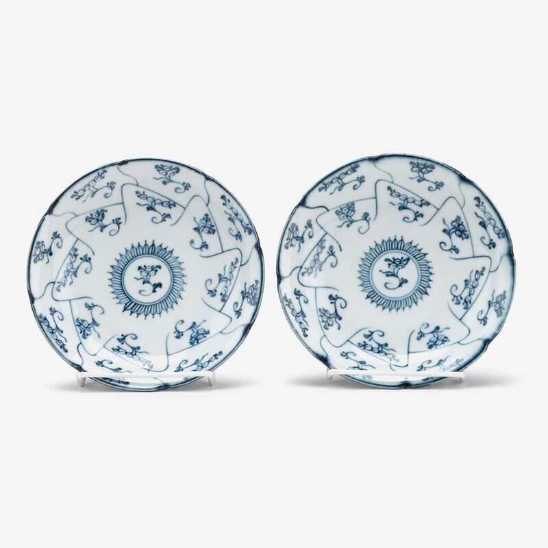 An unusual pair of Chinese blue and white export plates decorated with sprigs of fruit 18th/19th century
