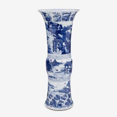 A Chinese blue and white landscape porcelain Gu vase kangxi period