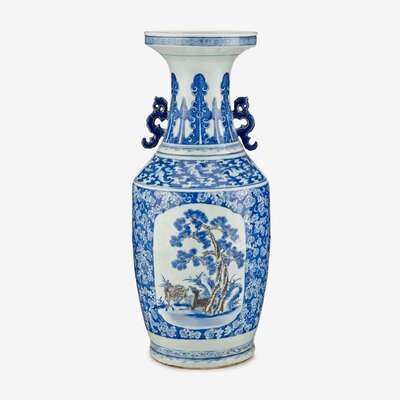 A large Chinese underglaze blue and copper red twin handled porcelain vase qing dynasty