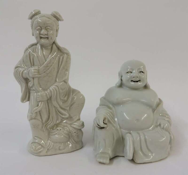 A Chinese blanc de chine standing figure of Liuhai and another of a Budai 19th century