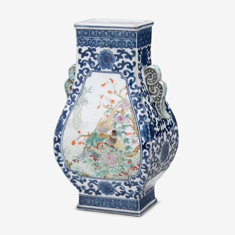 A Chinese underglaze blue and famille rose enameled "hu" vase qianlong mark, late qing/early republic period