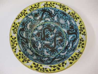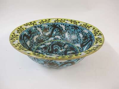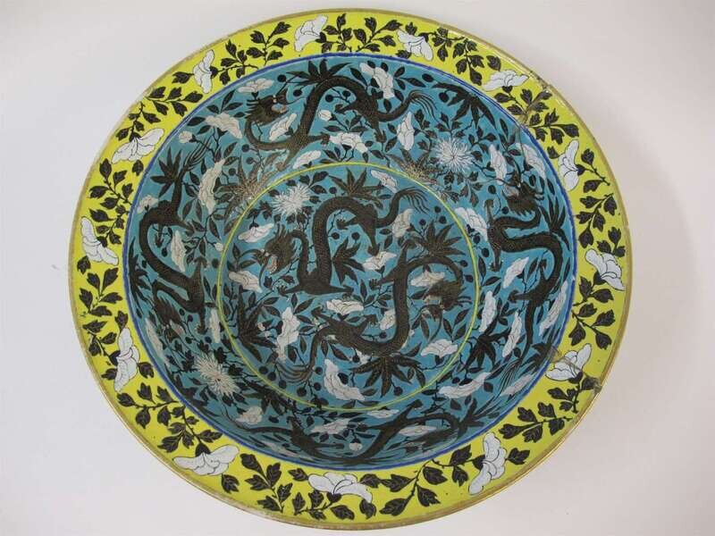 A large and rare Chinese Dowager-style turquoise ground porcelain dragon basin late qing dynasty