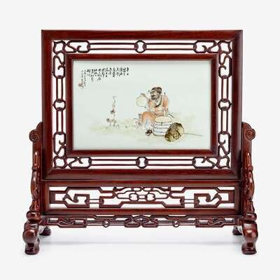 A Chinese famille rose plaque of Zhong Kui wan yunyan (1940s)