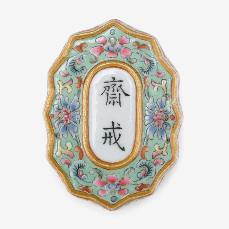 A Chinese famille rose "Abstinence" plaque 19th/20th century