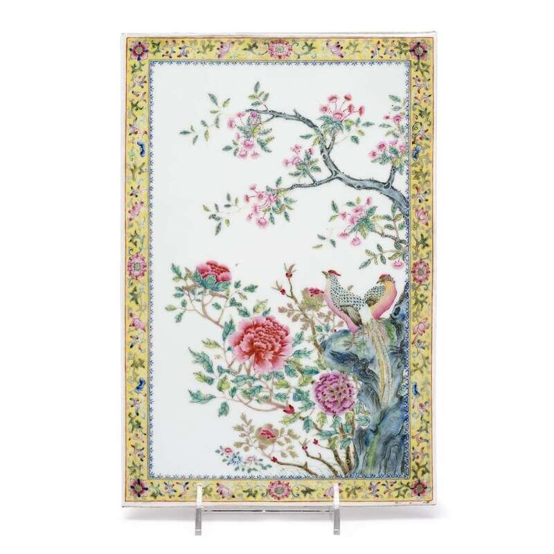 A Chinese famille rose porcelain plaque 'pheasant and peony' plaque republic period