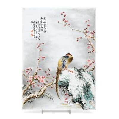 A Chinese famille rose porcelain plaque painted with a pheasant signed cheng yiting, dated 1931