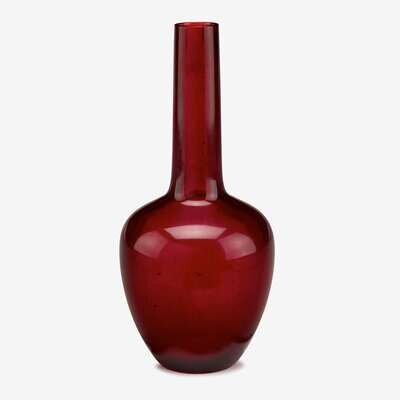 A Chinese pear shaped ruby red glass vase qianlong four character wheel-cut mark within a square and of the period