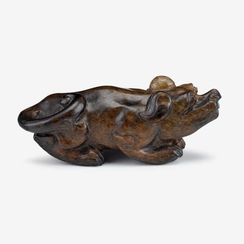 A Chinese carved mottled jade carving of a dog 17th/18th century