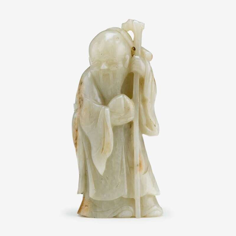 A Chinese carved white jade standing figure of Shoulao 19th century