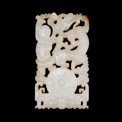 A Chinese white jade pendant carved showing a dragon and boy qing dynasty