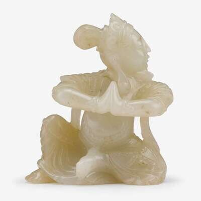A Chinese white jade carving of a bodhisattva holding anjali mudra