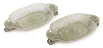 A pair of Mughal celadon jade chrysanthemum dishes 18th / 19th century
