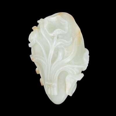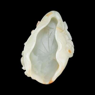 A carved Chinese white jade brush washer sculpted in the form of a lotus leaf qing dynasty