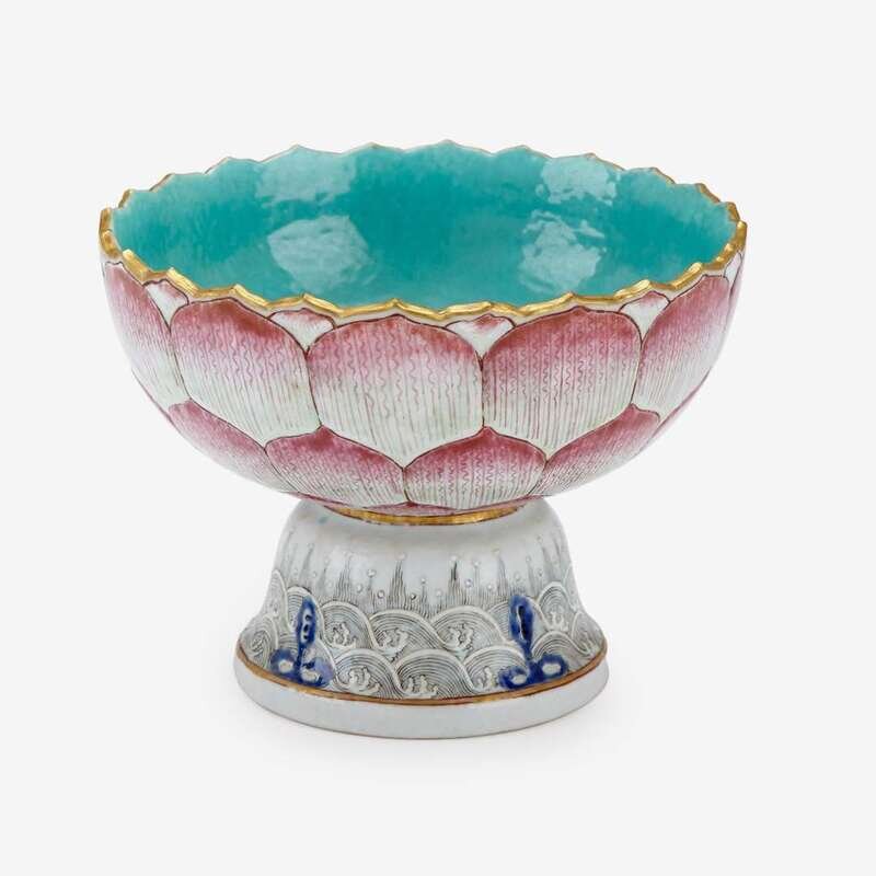 A Chinese famille rose porcelain 'lotus' stem bowl late qing dynasty