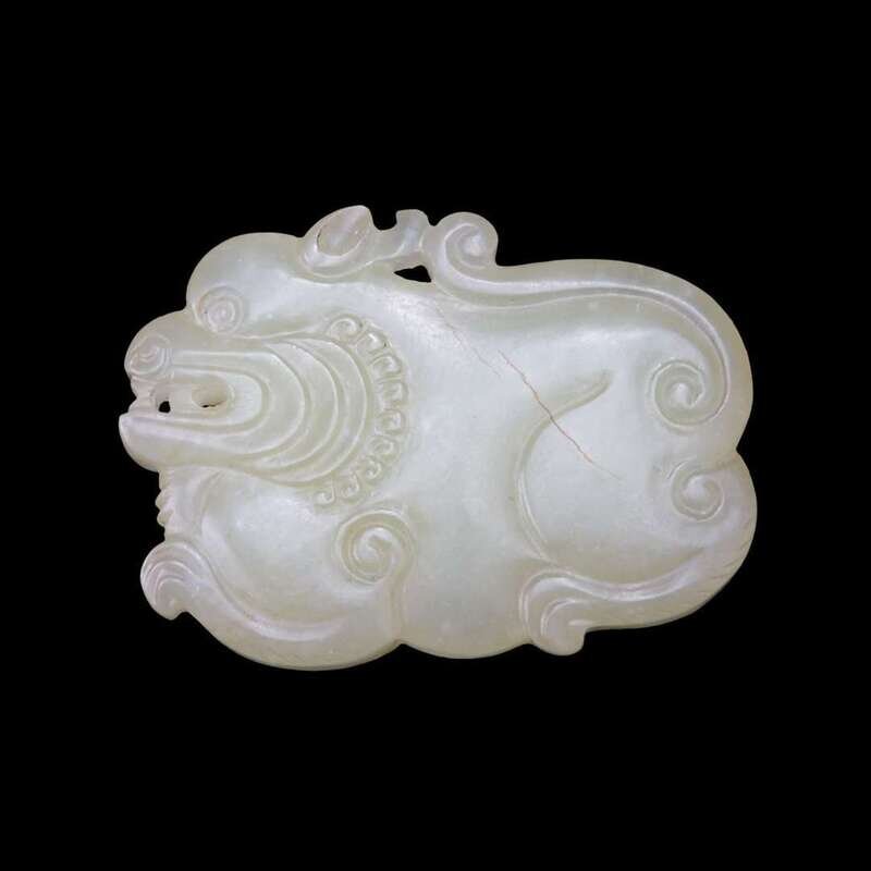A Chinese pale yellow jade qilin pendant late qing dynasty