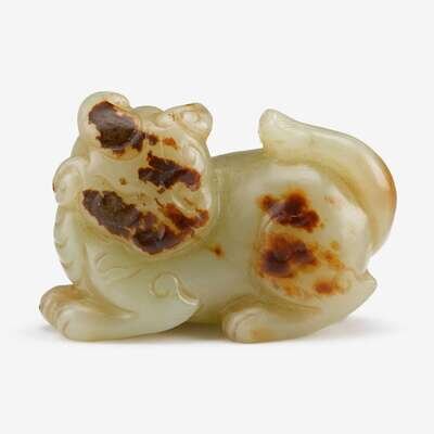 A Chinese carved yellow jade qilin toggle qing dynasty