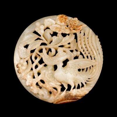 A Chinese carved white jade circular pendant of a phoenix qing dynasty