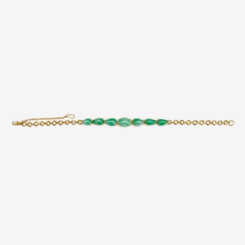 A Chinese teardrop jadeite inset gold chained bracelet early 20th century