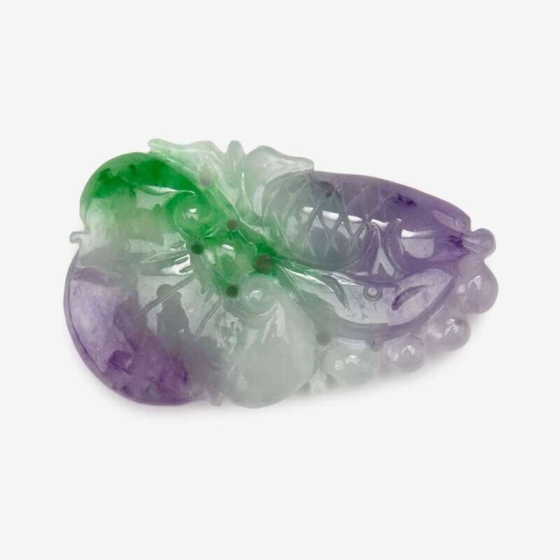 A carved Chinese multicolored jadeite pendant of fish 20th century