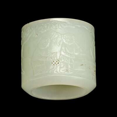 A Chinese carved white jade archer's ring 19th century