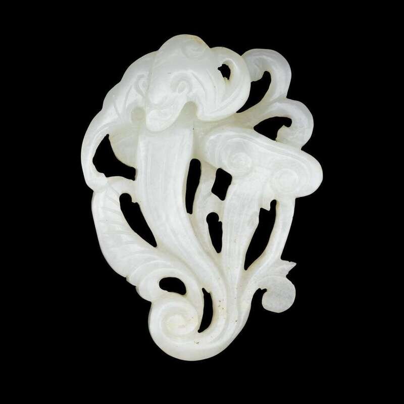A Chinese white jade reticulated pendant carved with lingzhi and fu bat 19th century