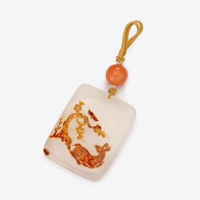 A Chinese cameo agate pendant of a deer beneath a plum tree 19th century