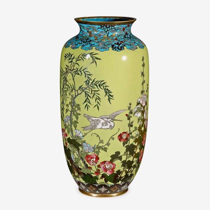 A Japanese cloisonné vase enameled to show cranes amongs flowers and trees 19th / 20th century
