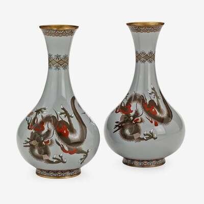 A pair of Japanese baluster form cloisonne dragon vases meiji period