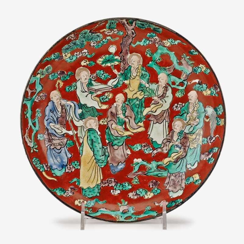 A Japanese Ko-Kyoto ware "Eight Immortals" plate aoiki mokubei, edo period