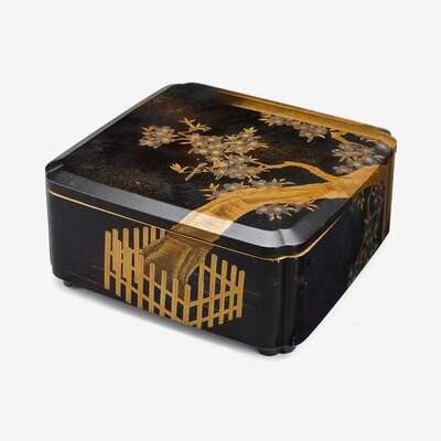 A Japanese gold splashed lacquer rectangular box with raised feet meiji period