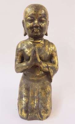 A Burmese gilt bronze figure of a kneeling monk sans base 19th century