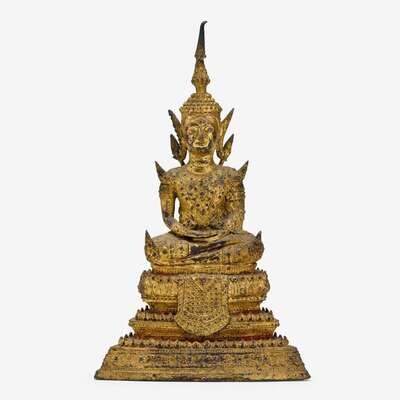 A Thai gilt bronze seated Buddha on multilayered platform 19th/20th century