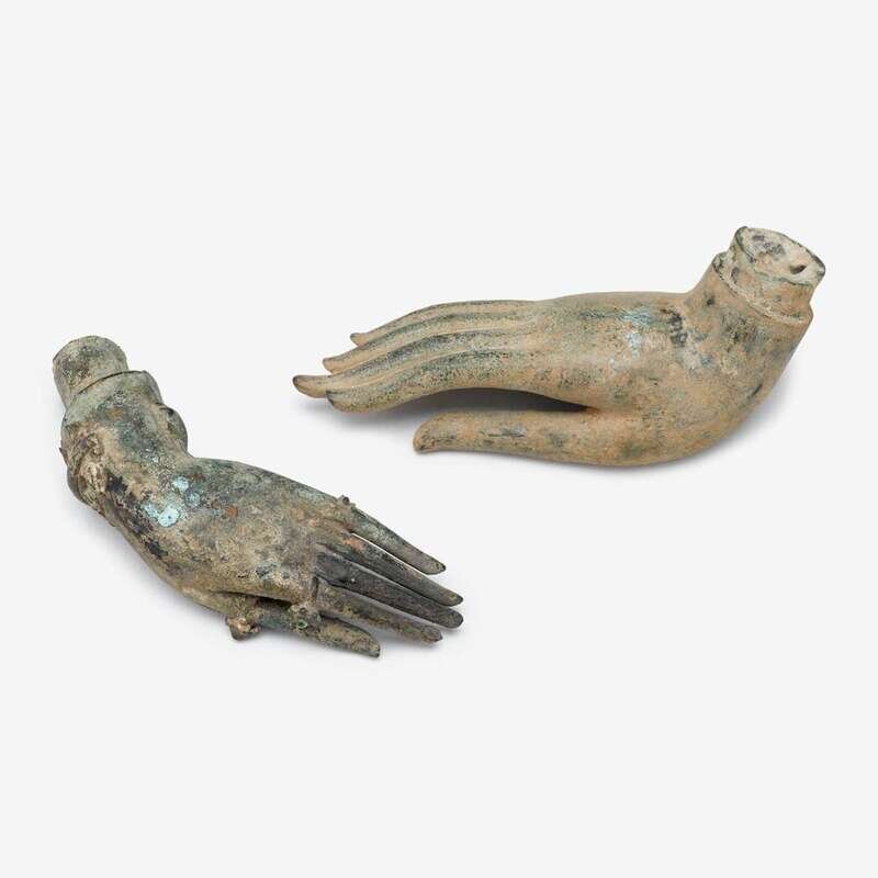 Two Thai cast bronze hand fragments 16th/17th century