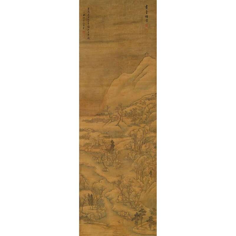 AFTER WANG HUI DATED 1652 FIGURES IN WINTER LANDSCAPE