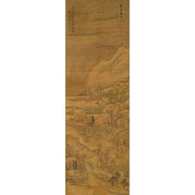 Hanging scroll, ink and color on silk, inscribed and signed, with four seals Sight H: 56 in., 142 cm, W:19 1/2 in., 50 cm