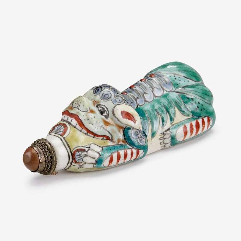 A Chinese famille rose enameled porcelain fu lion snuff bottle late qing dynasty