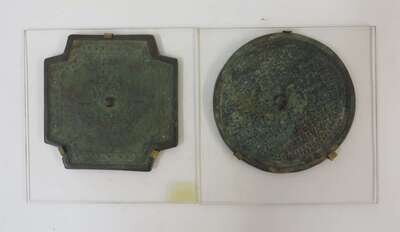 A Chinese diaper ground bronze mirror and a square formed mirror song dynasty