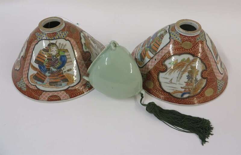 Two Japanese Imari decorated American desk lamp shades meiji period