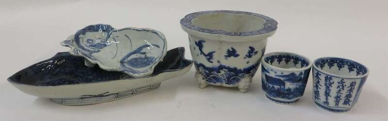 Five Japanese blue and white porcelain vessels meiji period