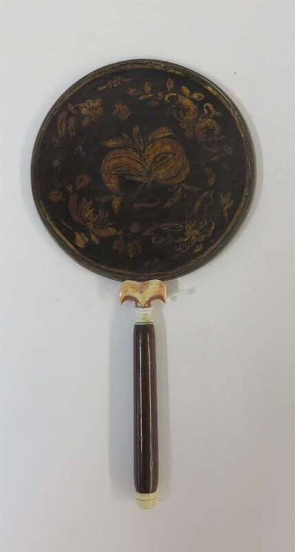 A Chinese lacquered silver mirror with wooden handle ming dynasty
