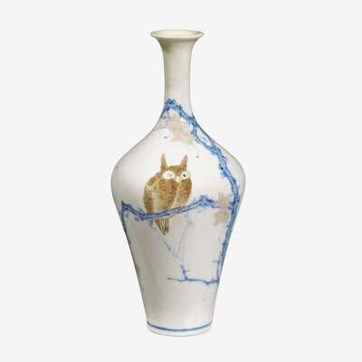 A miniature Japanese porcelain 'owl' vase signed makuzu kozan, meiji period