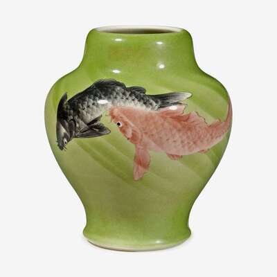 A fine Japanese porcelain baluster form 'koi' vase signed makuzu kozan, meiji period