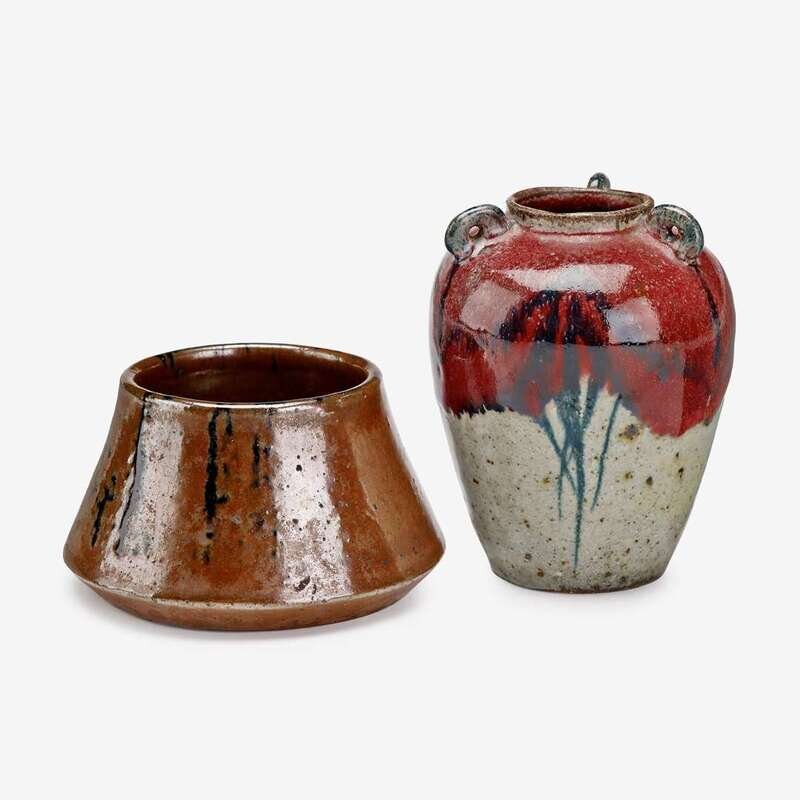 Two Japanese polychrome glazed vessels signed and attributed to bernard leach, 20th century
