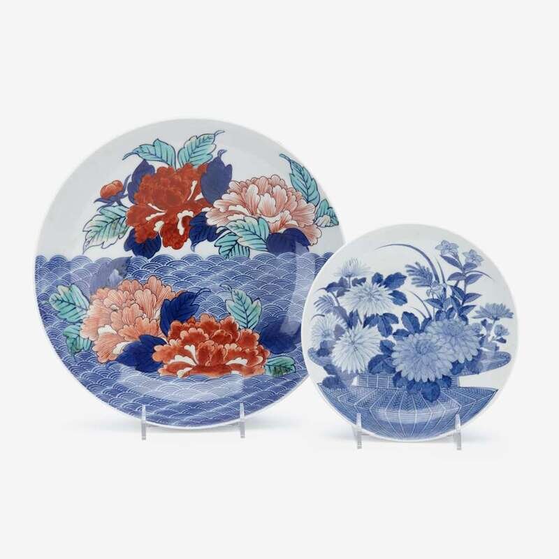 Two Japanese Nabeshima floral decorated porcelain footed dishes 17th / 18th century