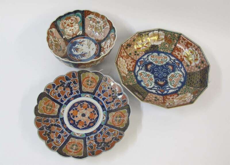 Three Japanese gilt Imari style porcelain bowls late edo period