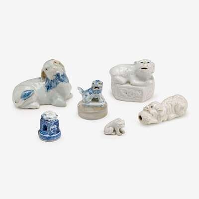 Six small Japanese blue and white glazed porcelain figurines 19th/20th century