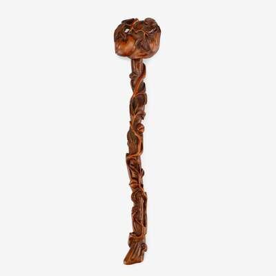 A carved Chinese boxwood Ruyi scepter carved with lingzhi and peach motifs 18th/19th century