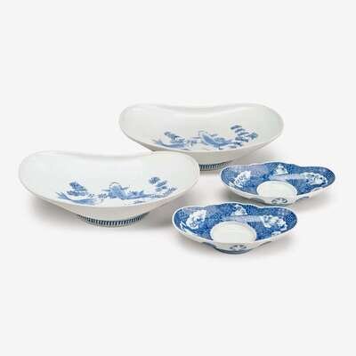 A large and a small pair of Japanese Nabeshima style blue and white Arita ware porcelain trays meiji period