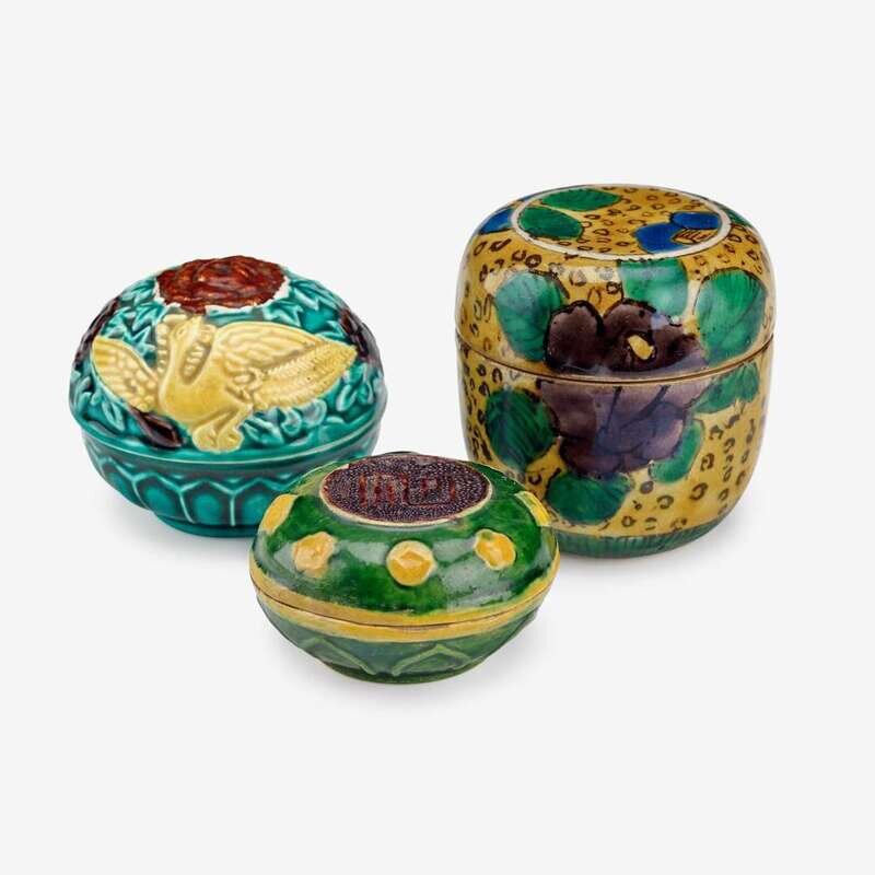 Three small Japanese ko-kutani porcelain covered boxes meiji period